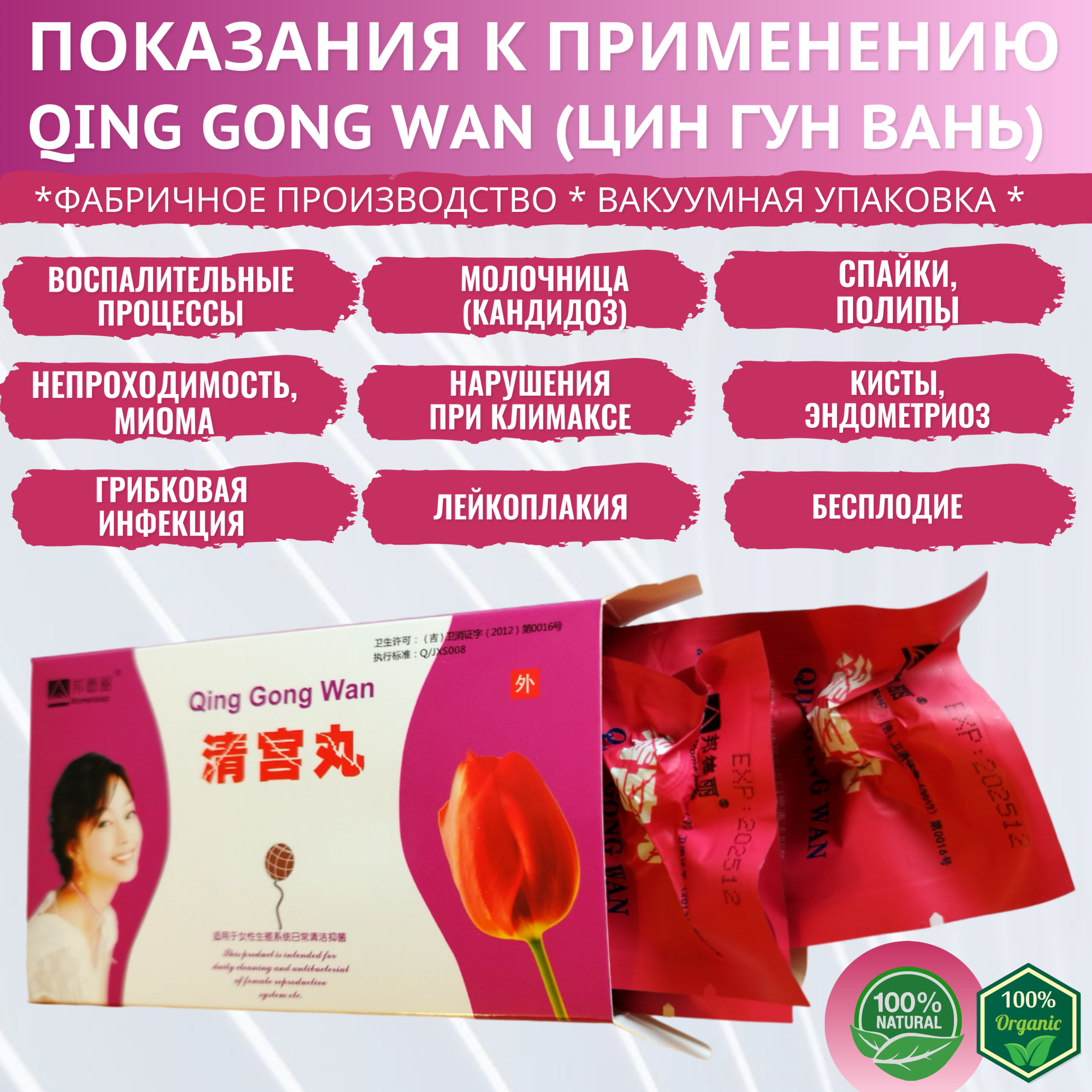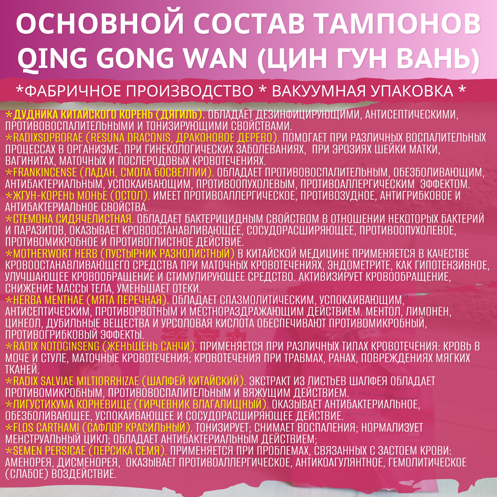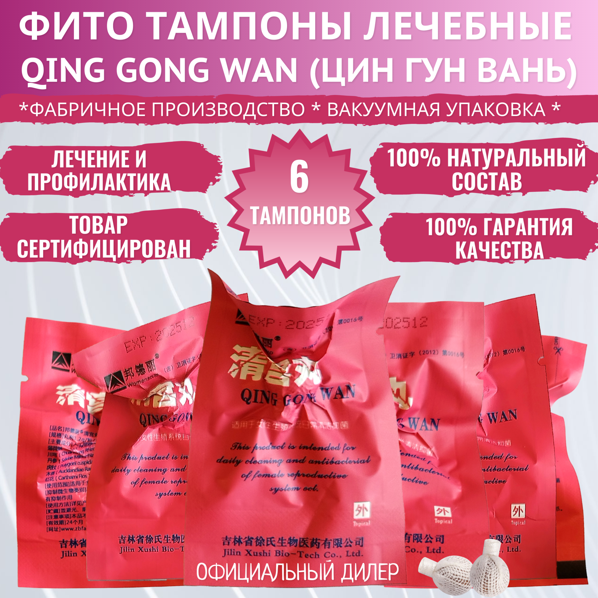 Фито тампоны оригинальные китайские "Qing Gong Wan" (Цин Гун Вань) Womenscup, коробка 6 шт. Фито тампоны женские травяные лечебные гинекологические