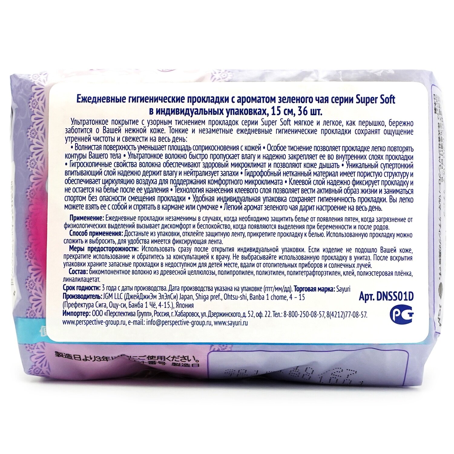 Гигиенические Прокладки Ежедневные Super Soft, 15 См 36 Шт SAYURI