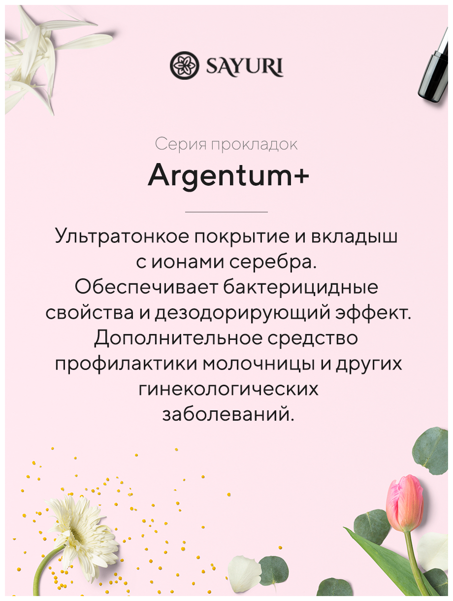 Sayuri Гигиенические прокладки Argentum+, нормал, 24 см, 10 шт