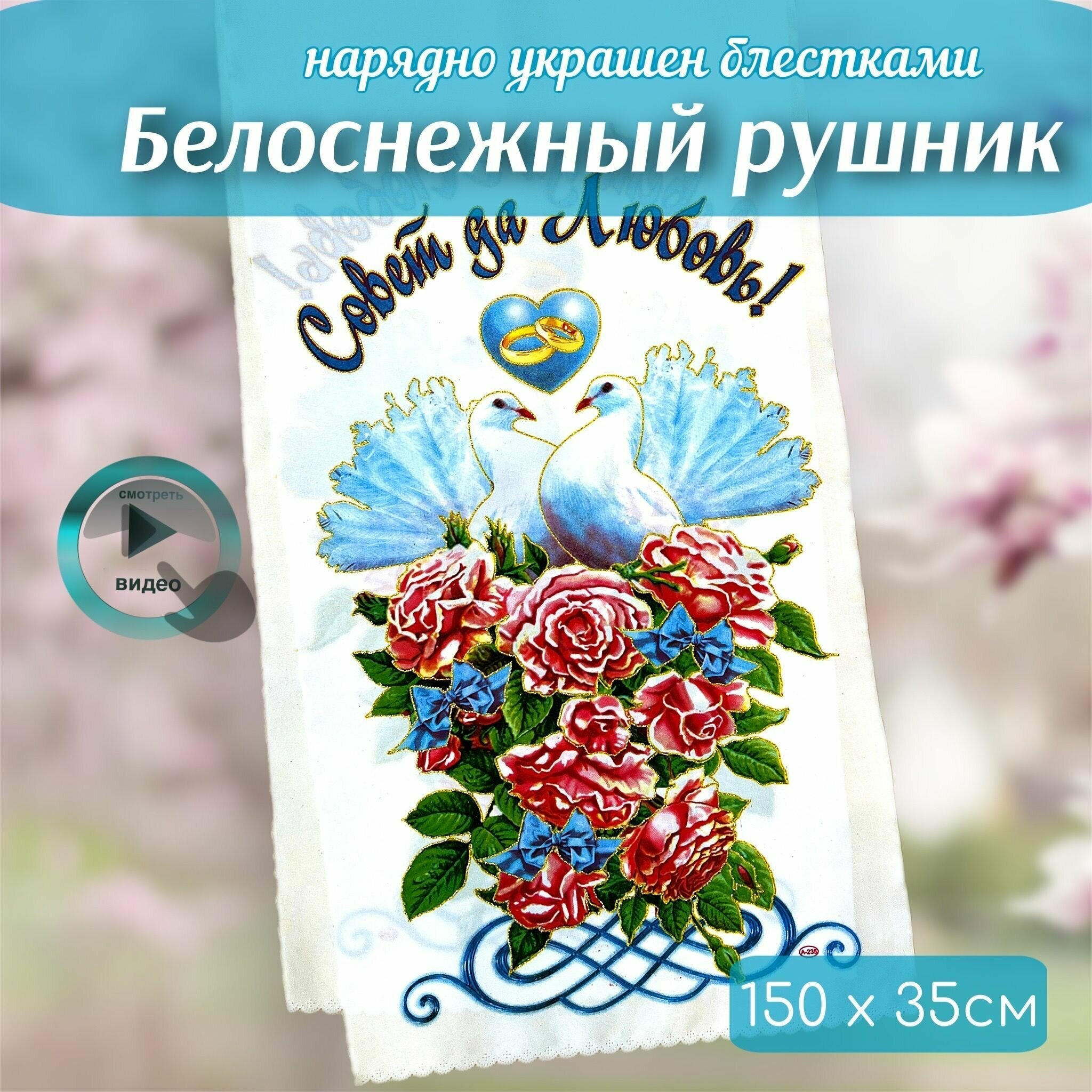 Рушники на свадьбу Совет да Любовь / Рушник свадебный венчальный для каравая и иконы под хлеб соль ( голуби символ любви )