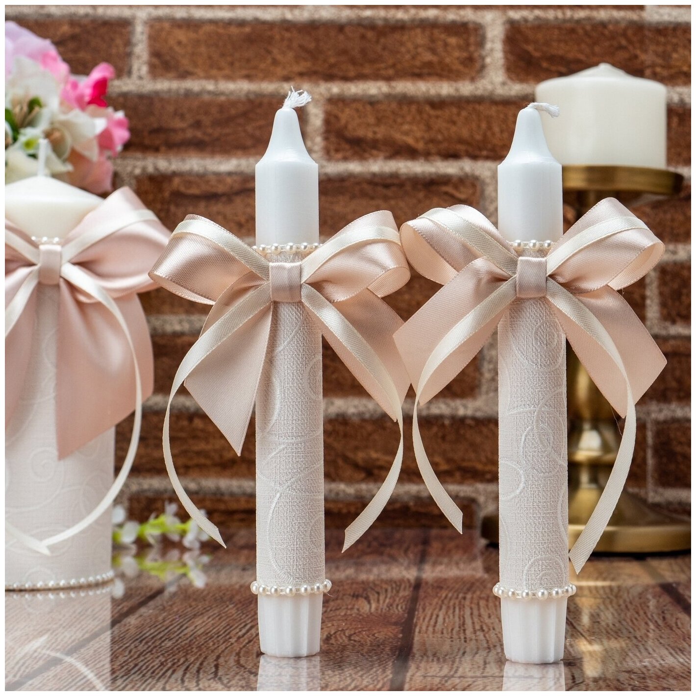 Купить Свадебный набор свечей с атласными бантами цвета какао на свадьбу, церемонию домашнего очага и для декора интерьера