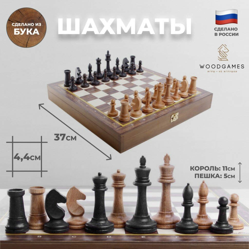 WoodGames Шахматы "Профессиональные" из бука с утяжелёнными турнирными фигурами (37 х 37 х 4,5 см)