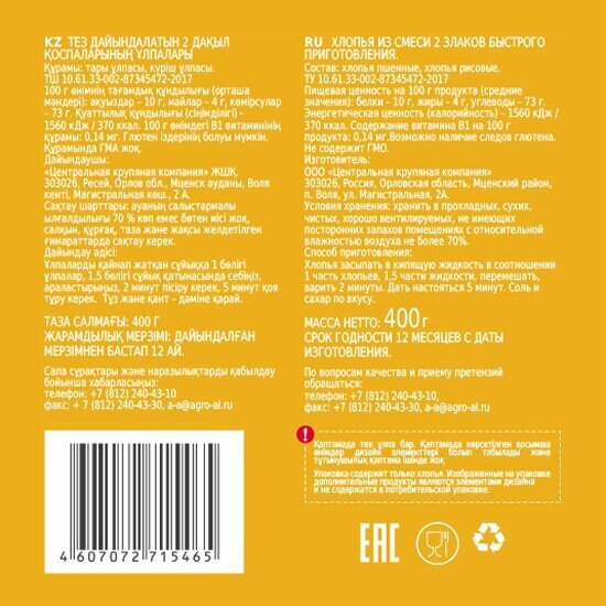 | Состав | пшенные хлопья / рисовые хлопья |