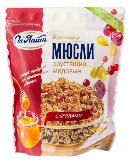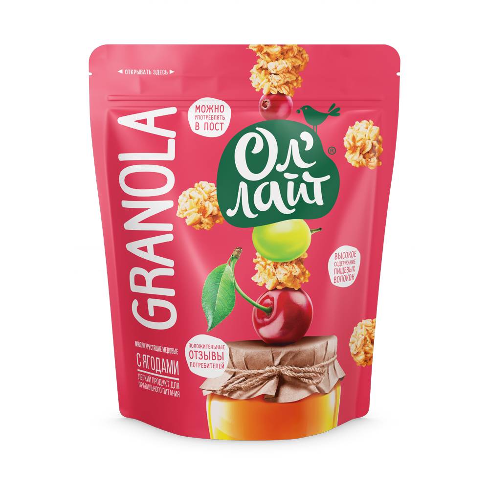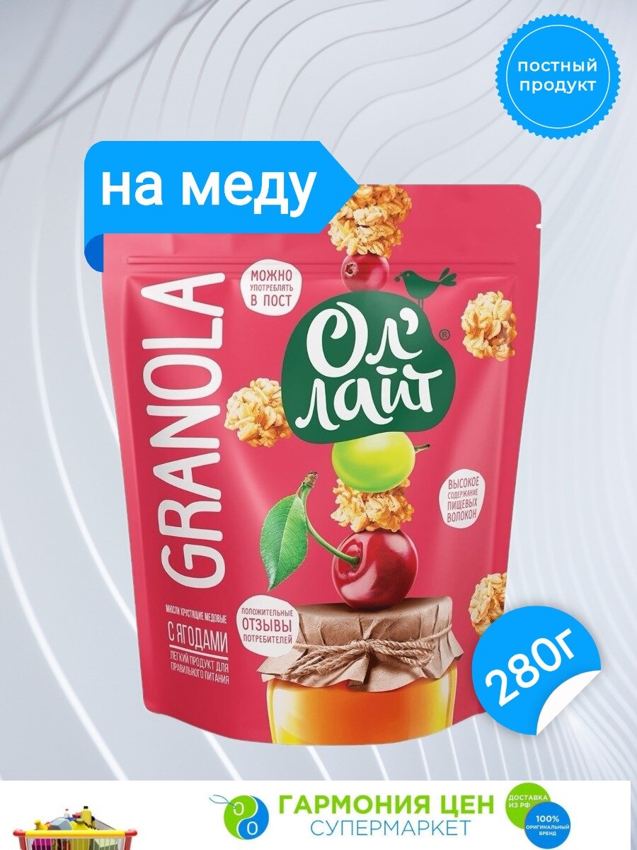 Гранола Мюсли запеченные Ол' Лайт медовая с ягодами, 280 г интересное: