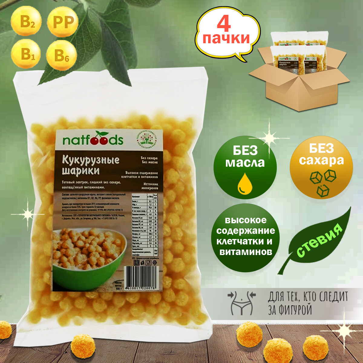 Купить Кукурузные шарики "Natfoods" без сахара 100 гр (4 шт. в наборе)