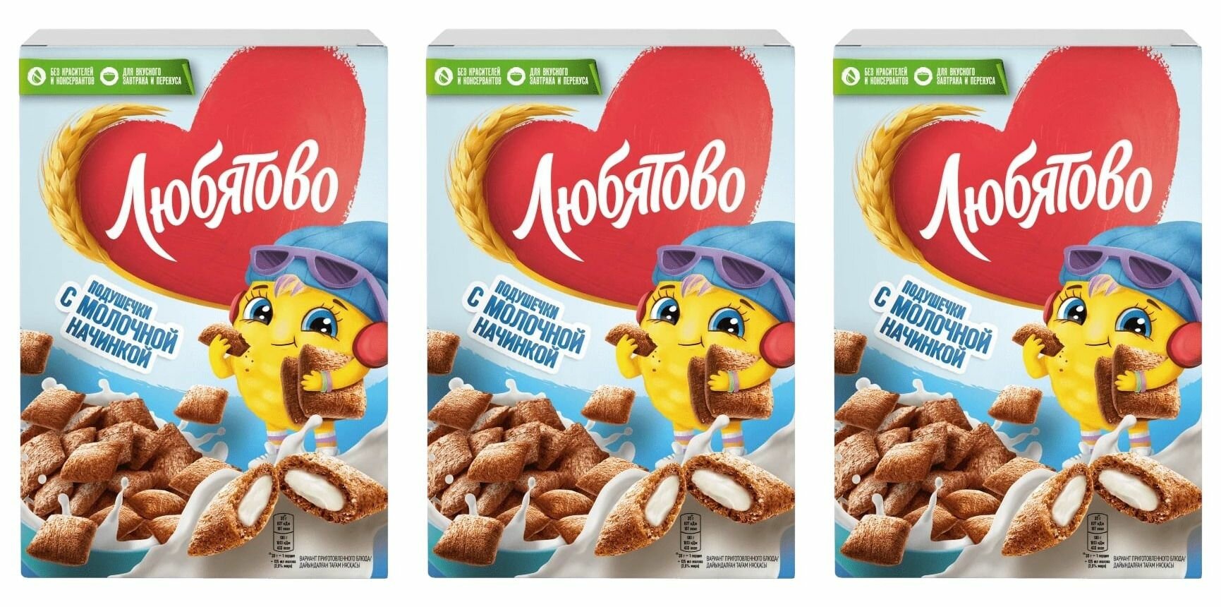 Любятово Сухой завтрак "Подушечки с молочной начинкой", 220 г, 3 уп интересное: