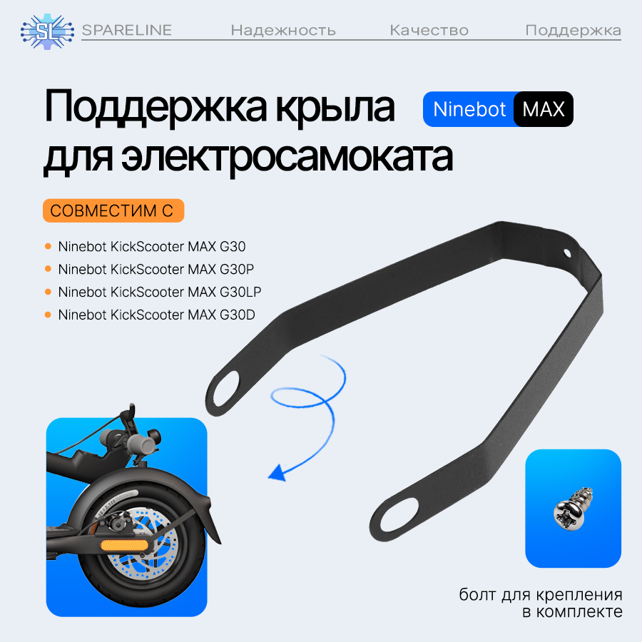 | Дополнительная информация | Кронштейн, поддержка заднего крыла для электросамоката Ninebot KickScooter MAX G30 металл, черный |