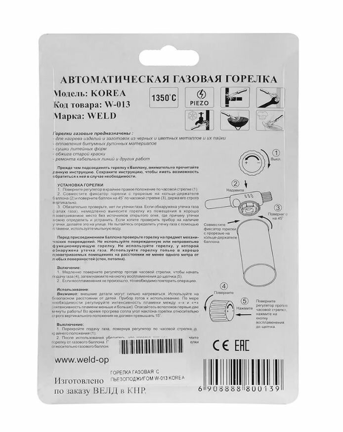 Ниже Вы можете прочитать отзывы на Горелка газовая WELD автоматическая W-013, ознакомится с подробными характеристиками, посмотреть интересные обзоры и фотографии на Горелка газовая WELD автоматическая W-013.