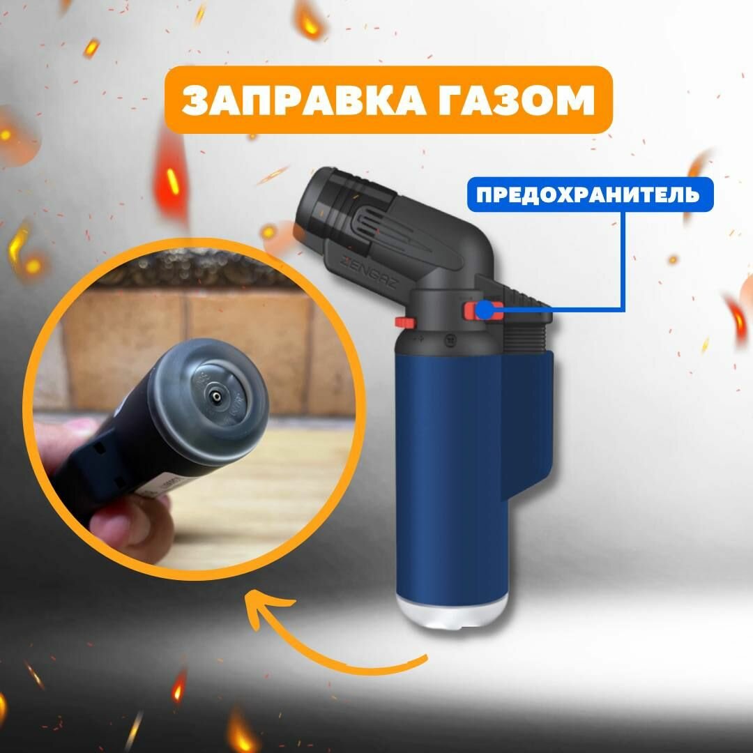 Туристическая турбо зажигалка - горелка Zengaz ZT-60 AngleTorch Jet Rubberized Blue (Синяя) интересное: