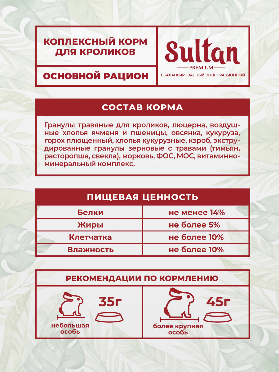 Sultan корм для кроликов основной рацион 400 гр интересное:
