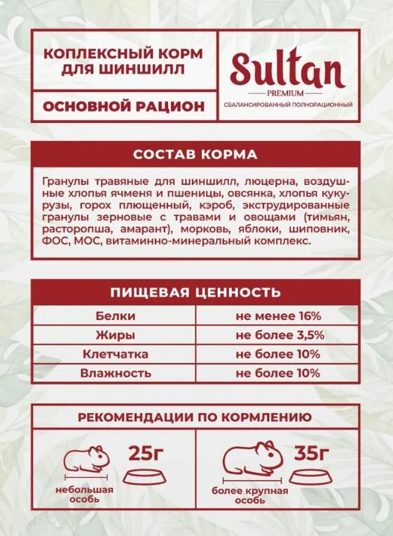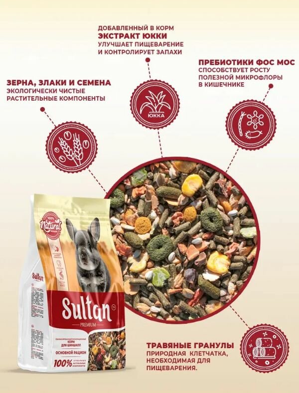 Купить Сухой корм для шиншилл Sultan Султан, 400 гр 4 шт (1,6 кг)