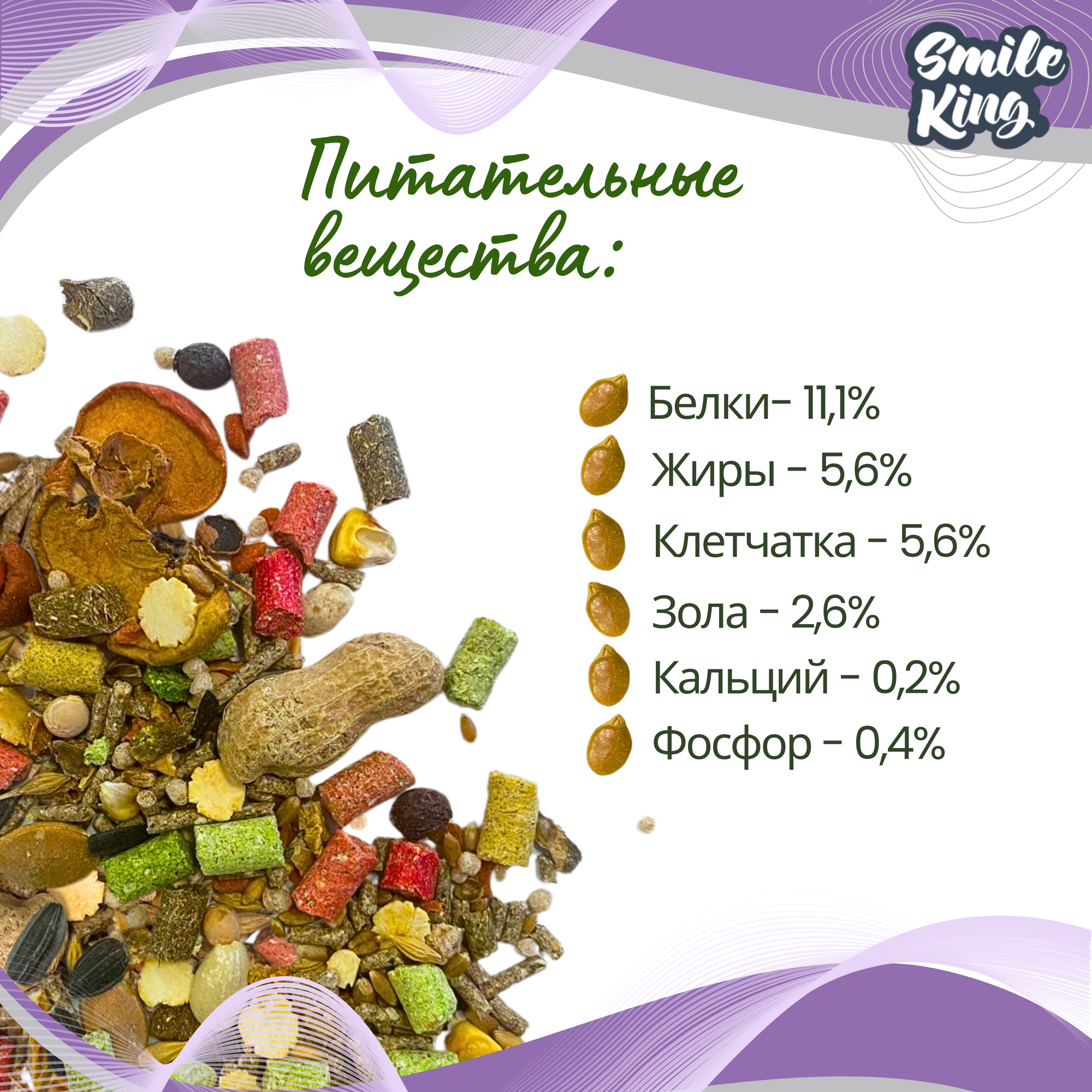 Корм для хомяков Smile King (Беларусь), 3 упак по 400г. интересное: