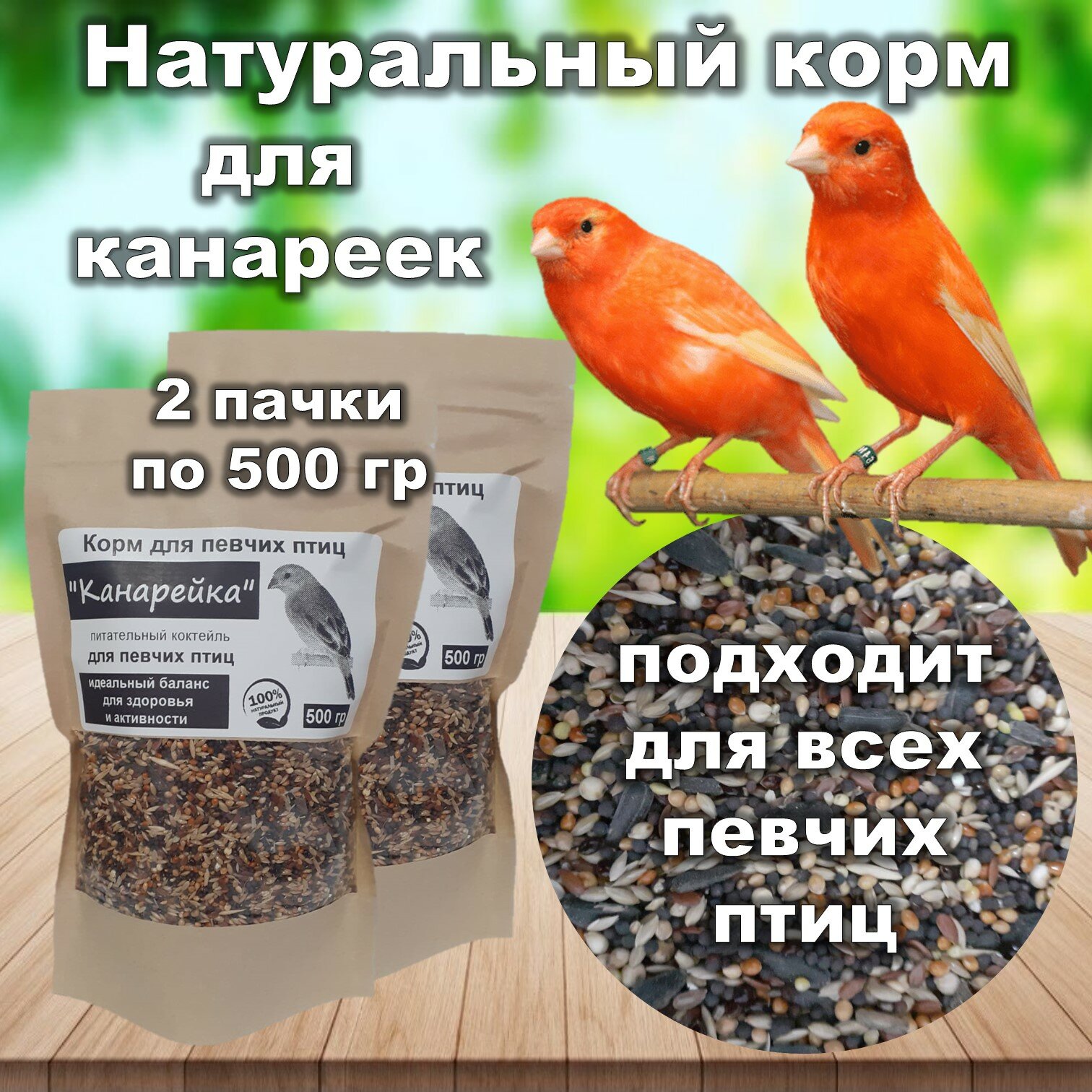 Корм для канареек, певчих птиц "Канарейка", 2 пачки по 500 грамм интересное: