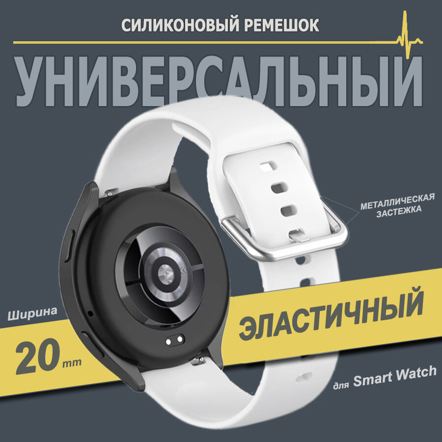 Универсальный силиконовый ремешок для часов 20 мм, Белый интересное: