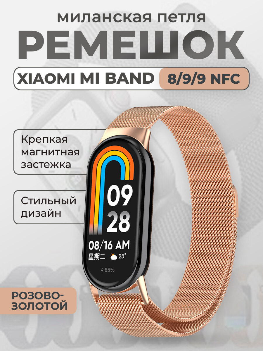 Купить Ремешок для Xiaomi Mi Band 8/9/9 NFC, миланская петля,розово-золотой
