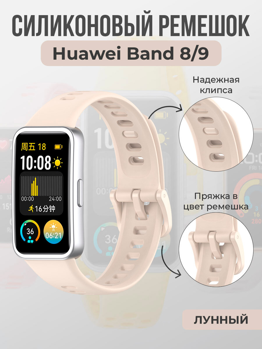 Купить Силиконовый ремешок для Huawei Band 8/9, с клипсой, лунный
