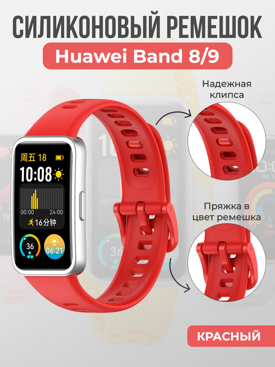 Купить Силиконовый ремешок для Huawei Band 8/9, с клипсой, красный