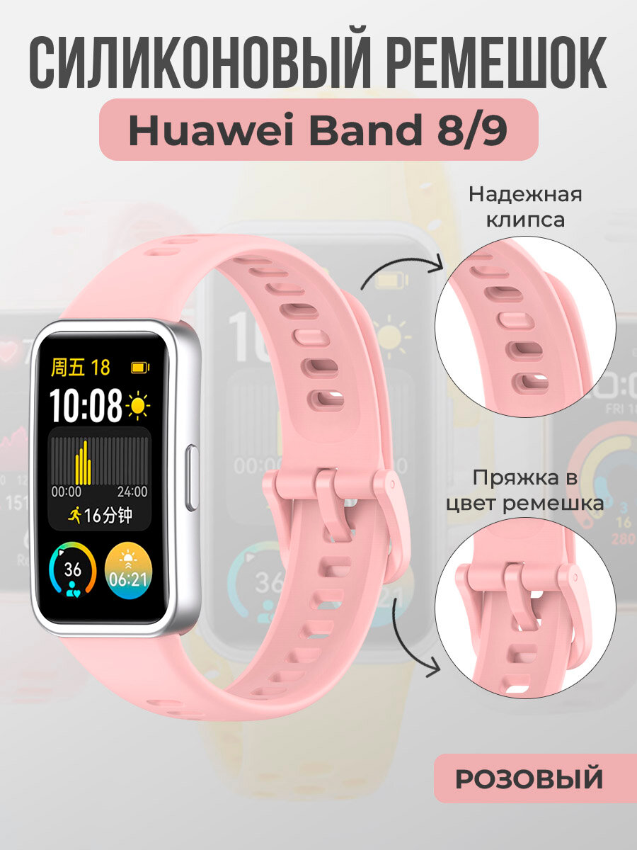 Купить Силиконовый ремешок для Huawei Band 8/9, с клипсой, розовый