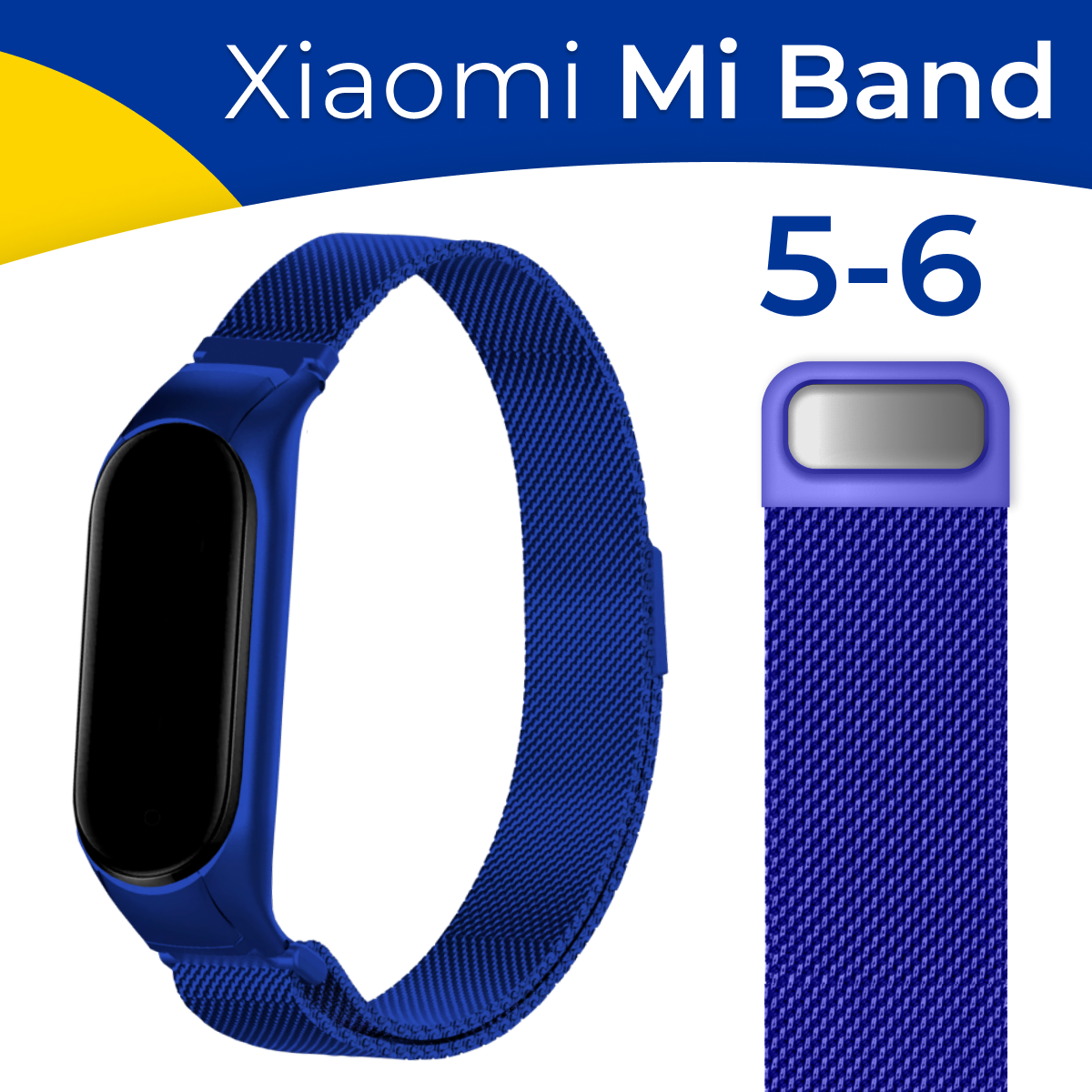 Купить Металлический ремешок для фитнес-трекера Xiaomi Mi Band 5 и 6 / Стальной браслет миланская петля для умных смарт часов Сяоми Ми Бэнд 5 и 6 / Синий