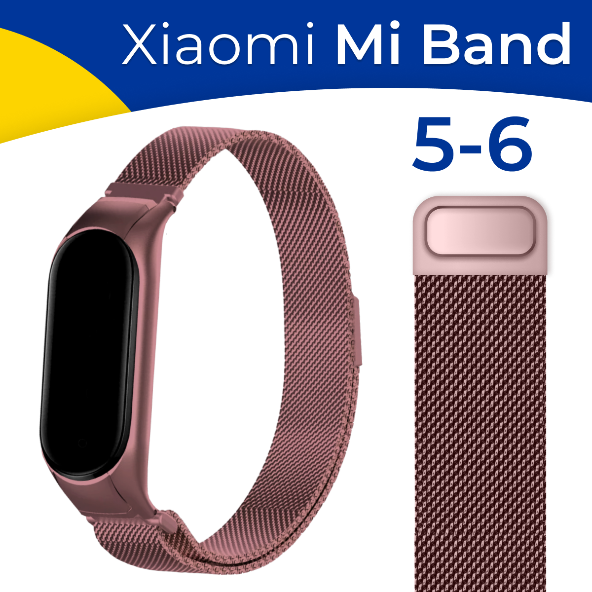 Металлический ремешок для фитнес-трекера Xiaomi Mi Band 5 и 6 / Стальной браслет миланская петля для умных смарт часов Сяоми Ми Бэнд 5 и 6 / Розовый