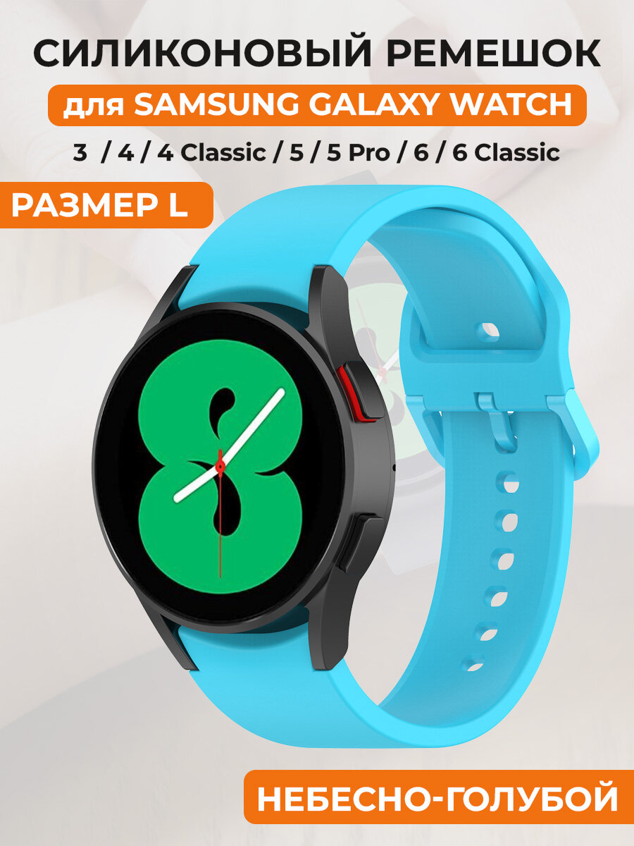 Купить Силиконовый ремешок для Samsung Galaxy Watch 4/5/6, пряжка в цвет ремешка, размер L, небесно-голубой