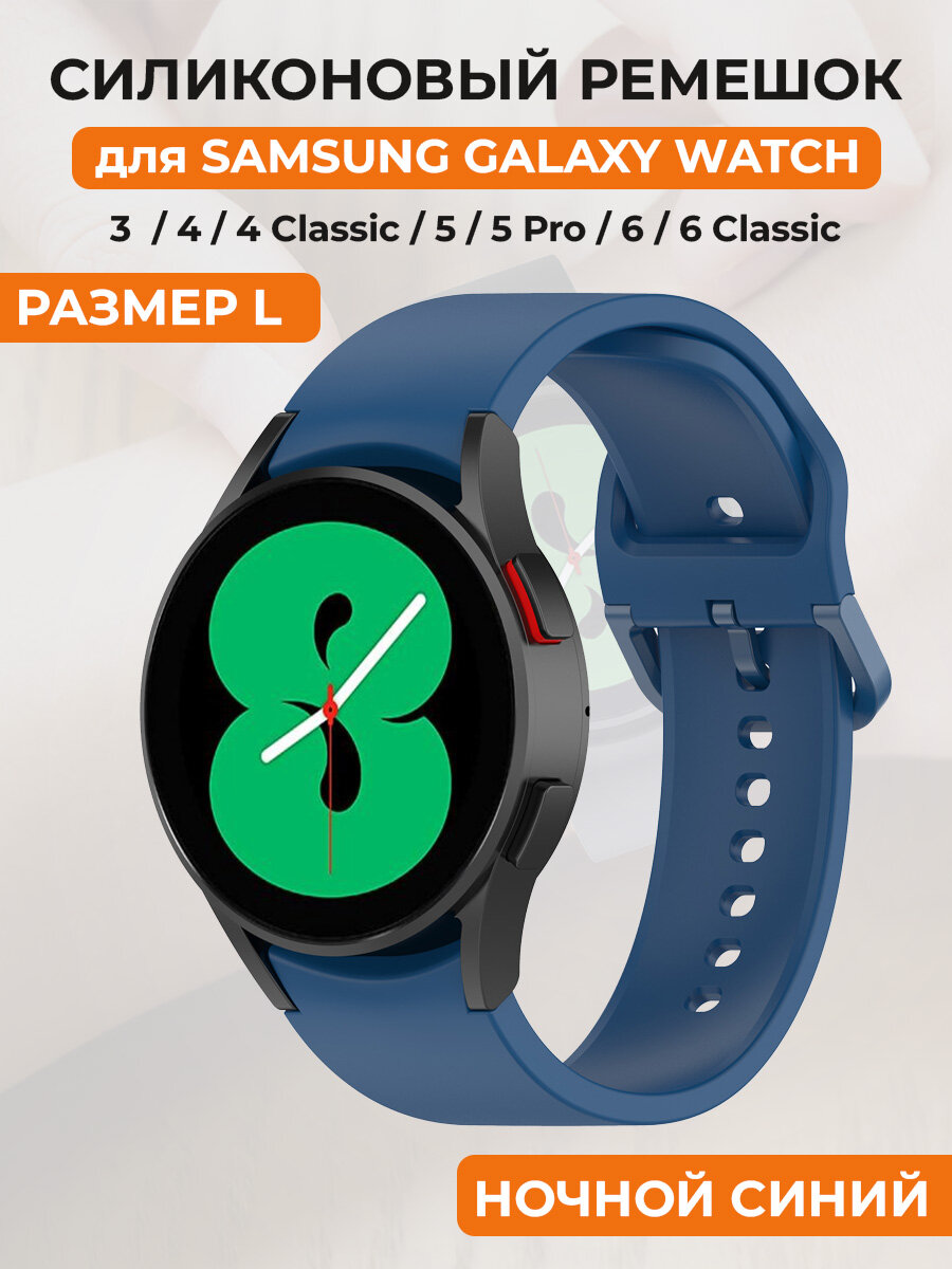 Купить Силиконовый ремешок для Samsung Galaxy Watch 4/5/6, пряжка в цвет ремешка, размер L, ночной синий