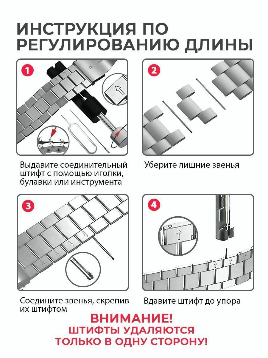 | Дополнительная информация | Комплектация: браслет, быстросъемные шпильки - 2, инструмент для регулировки длины, коробка брендированная |