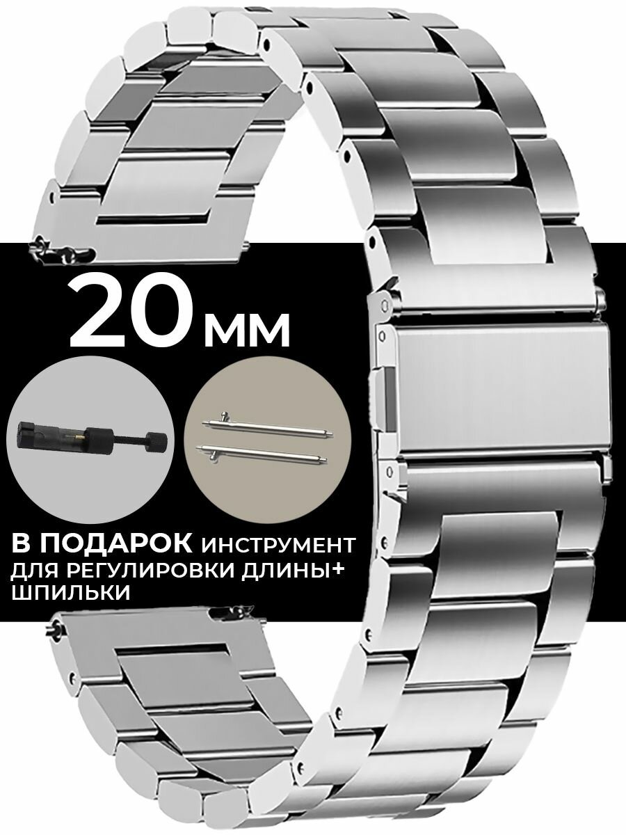 Стальной браслет для часов 20 мм, металлический ремешок для смартчасов