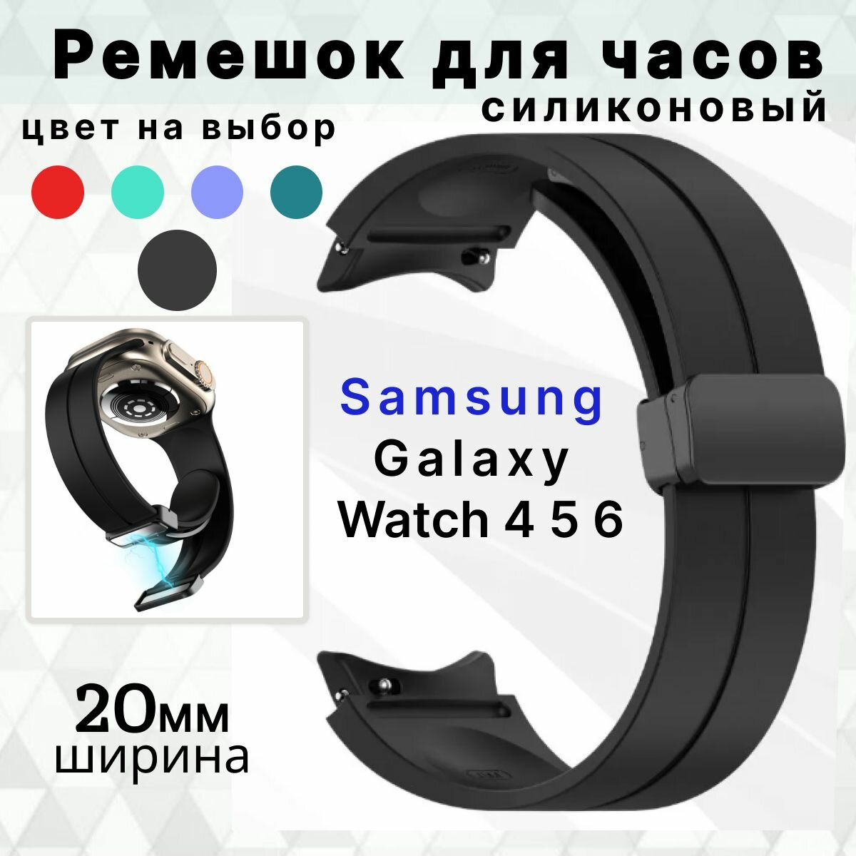 Силиконовый ремешок для часов Samsung Galaxy Watch 4 Classic 40 42 43 44 46 47 мм черный Браслет для самсунг галакси вотч 4, 5, 6. интересное: