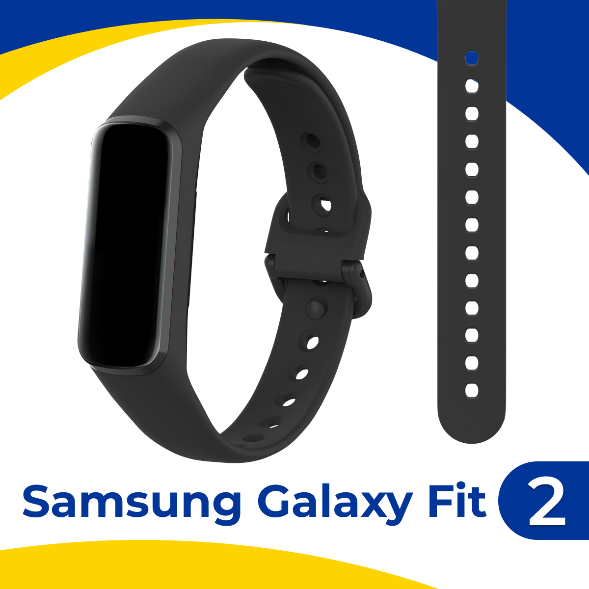 Купить Силиконовый спортивный ремешок для фитнес-браслета Samsung Galaxy Fit 2 / Сменный браслет на умные смарт часы Самсунг Галакси Фит 2 / Черный