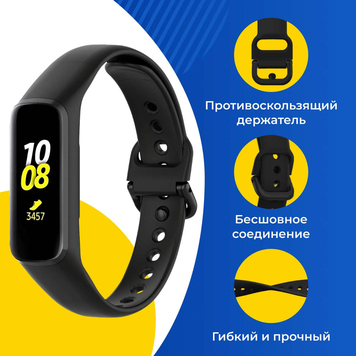Силиконовый спортивный ремешок для фитнес-браслета Samsung Galaxy Fit 2 / Сменный браслет на умные смарт часы Самсунг Галакси Фит 2 / Черный