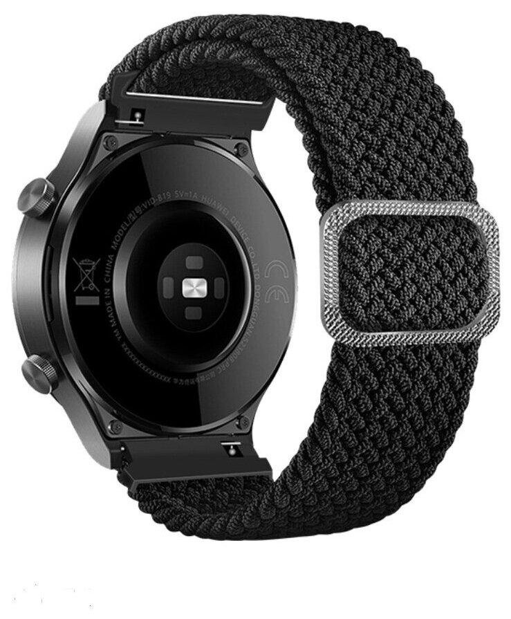 Купить Плетеный нейлоновый тканевый ремешок для часов Samsung Galaxy Watch 3 45 мм/huawei watch GT2 46 мм/Gear S3, Amazfit GTR 47 мм .Черный. 22 мм.
