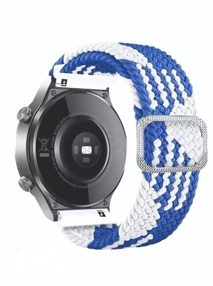 Купить Плетеный нейлоновый ремешок для часов Huawei watch GT2 46 мм/Gear S3, Amazfit GTR 47 мм. Тканевый. синий /белый. 22 мм.