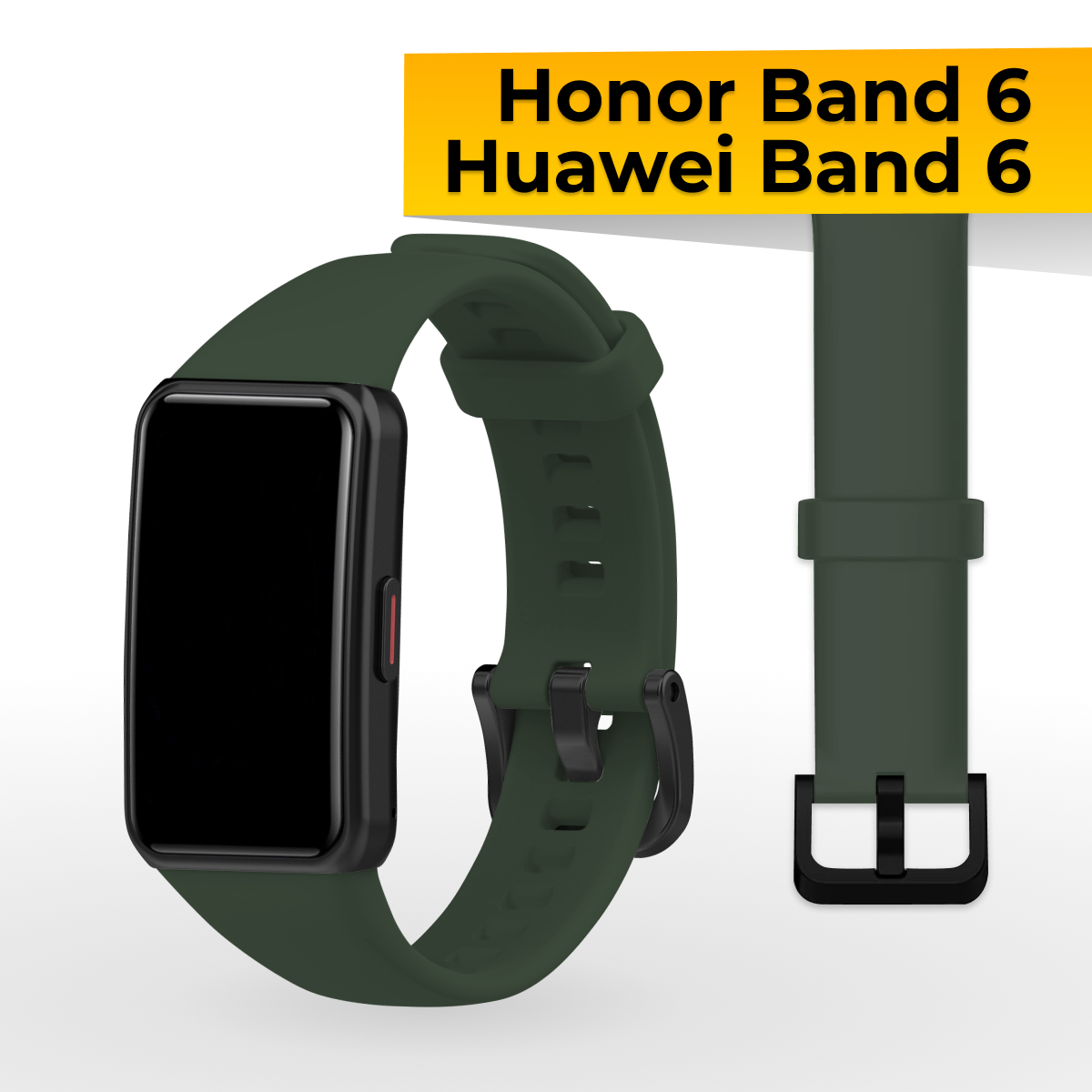 Купить Силиконовый ремешок с застежкой для Honor Band 6 и Huawei Band 6 / Спортивный сменный браслет на часы Хонор Бэнд 6 и Хуавей Бэнд 6 / Зеленый