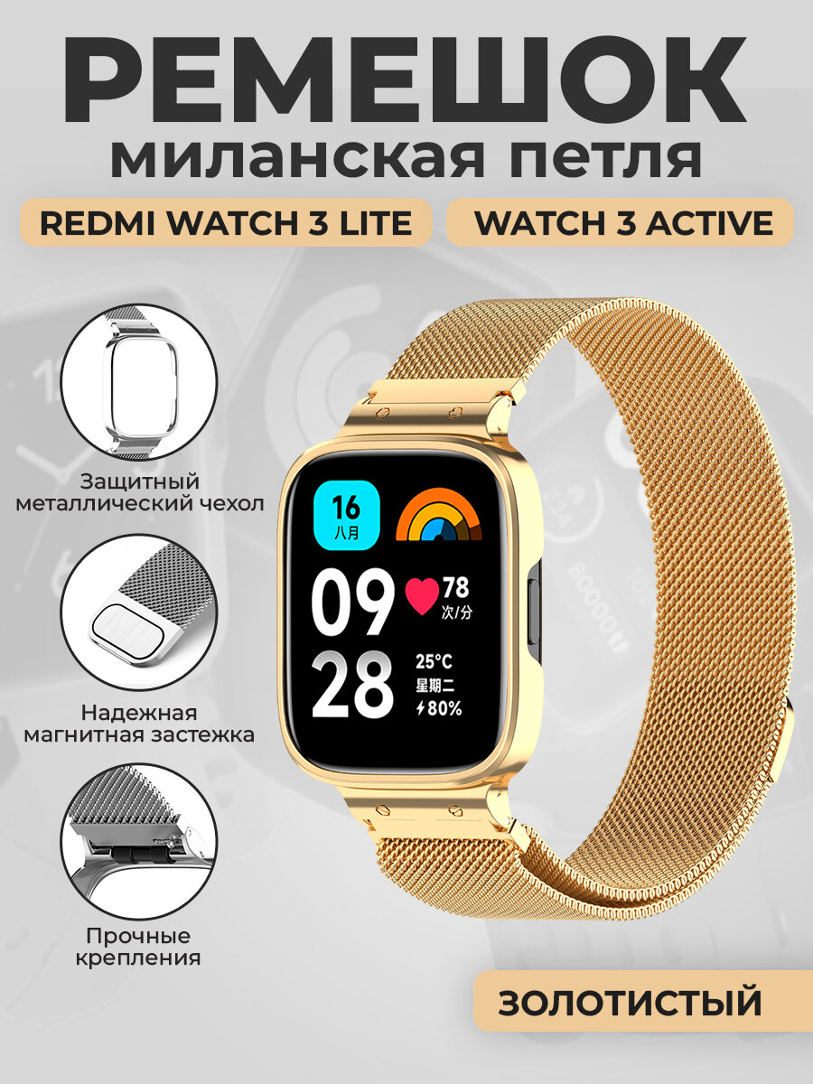 Ремешок миланская петля для Redmi Watch 3 Lite, Watch 3 Active, золотистый интересное: