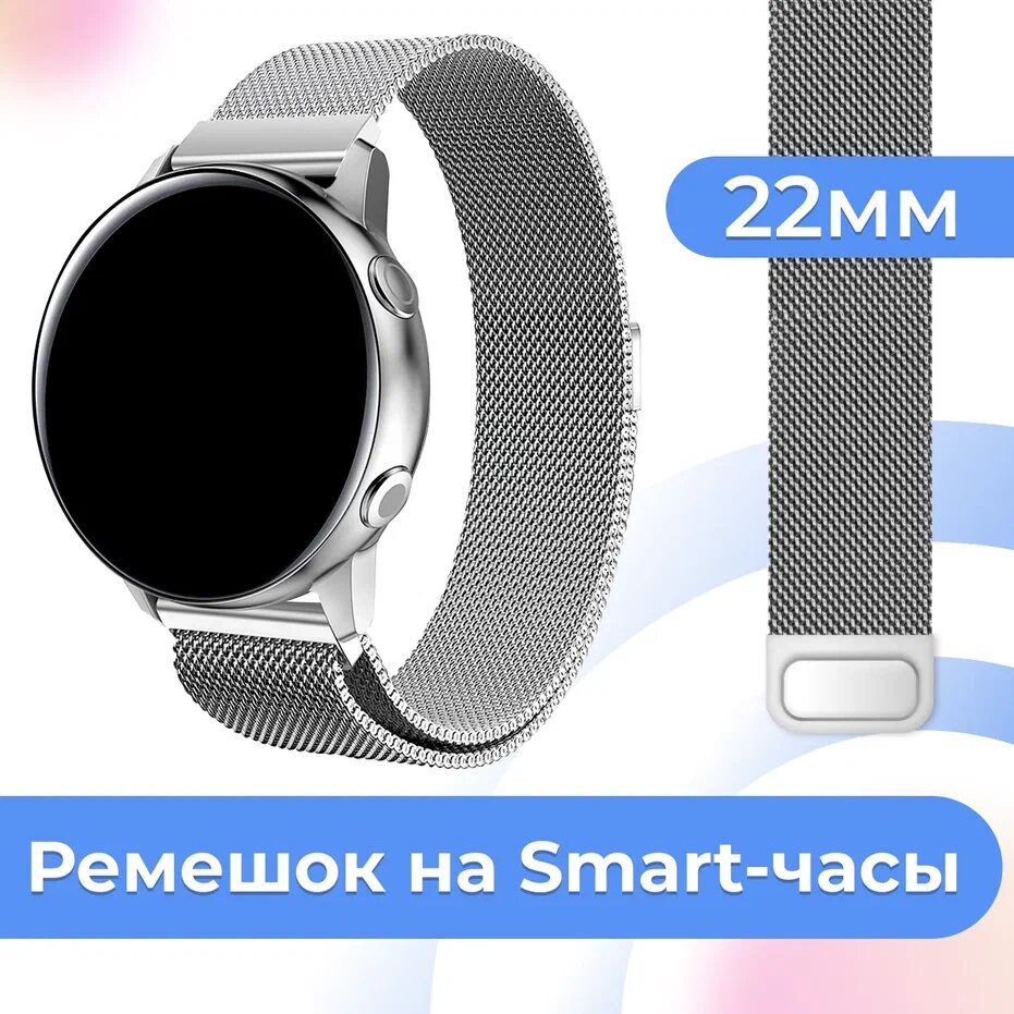 Купить Металлический браслет для часов Samsung Galaxy Watch, Huawei, Honor, Amazfit, Xiaomi, Garmin, Fossil / 22 mm / Ремешок миланская петля / Серебро