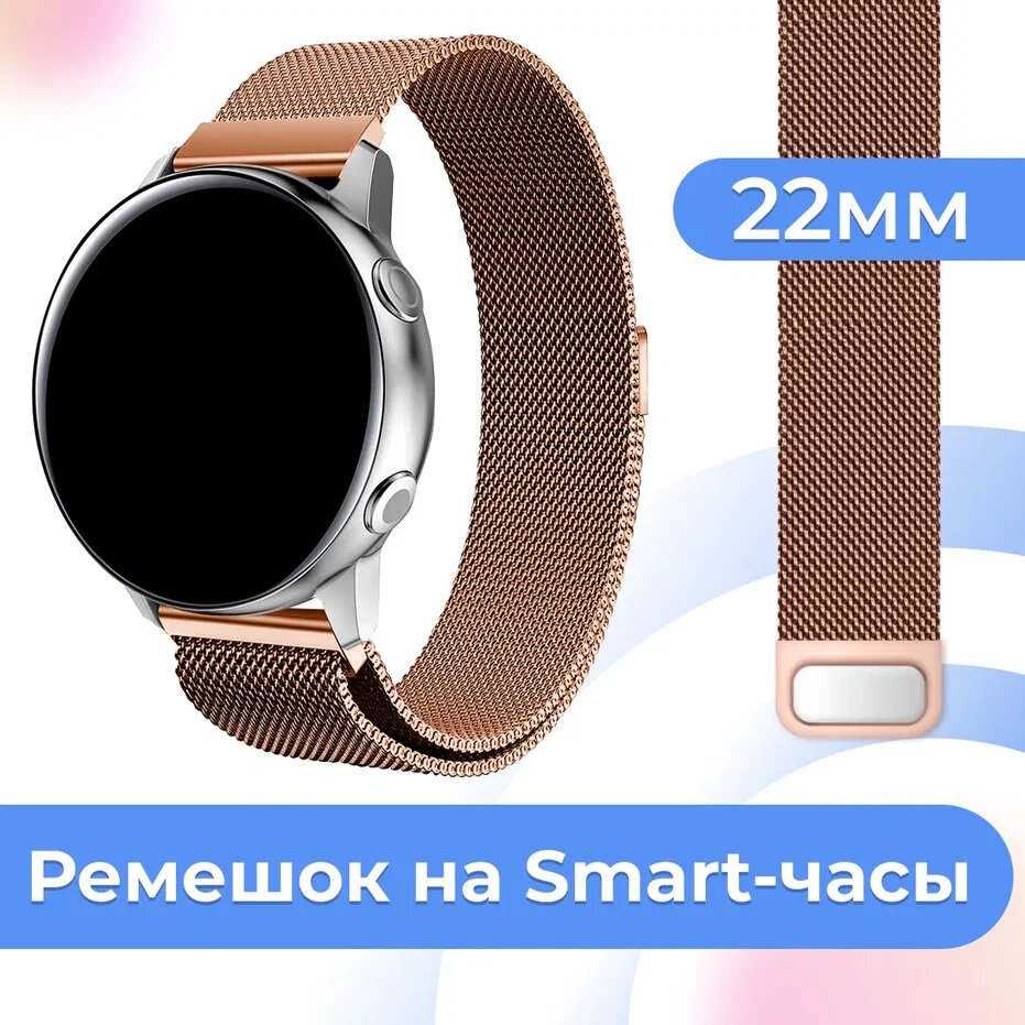 Купить Металлический браслет для часов Samsung Galaxy Watch, Huawei, Honor, Amazfit, Xiaomi, Garmin, Fossil / 22 mm / Ремешок миланская петля / Бронза