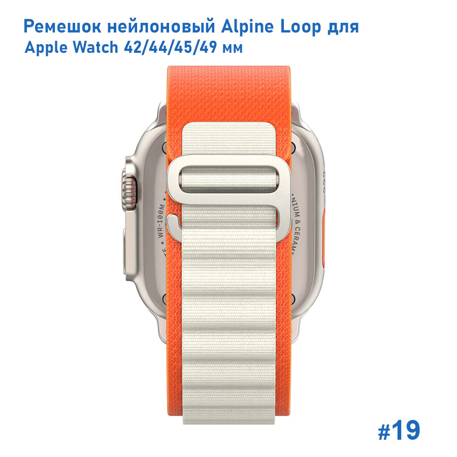 СохранитьРемешок нейлоновый Alpine Loop для Apple Watch 42/44/45/49 мм, на застежка, оранжевый+белый (19) интересное: