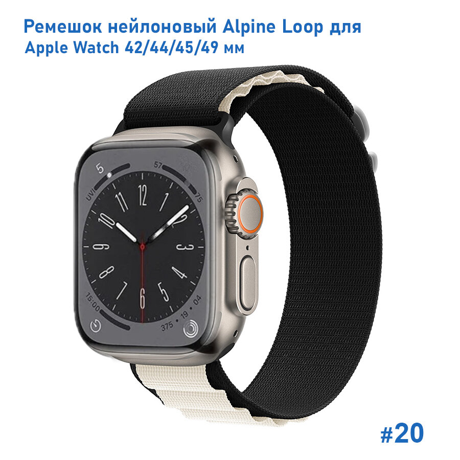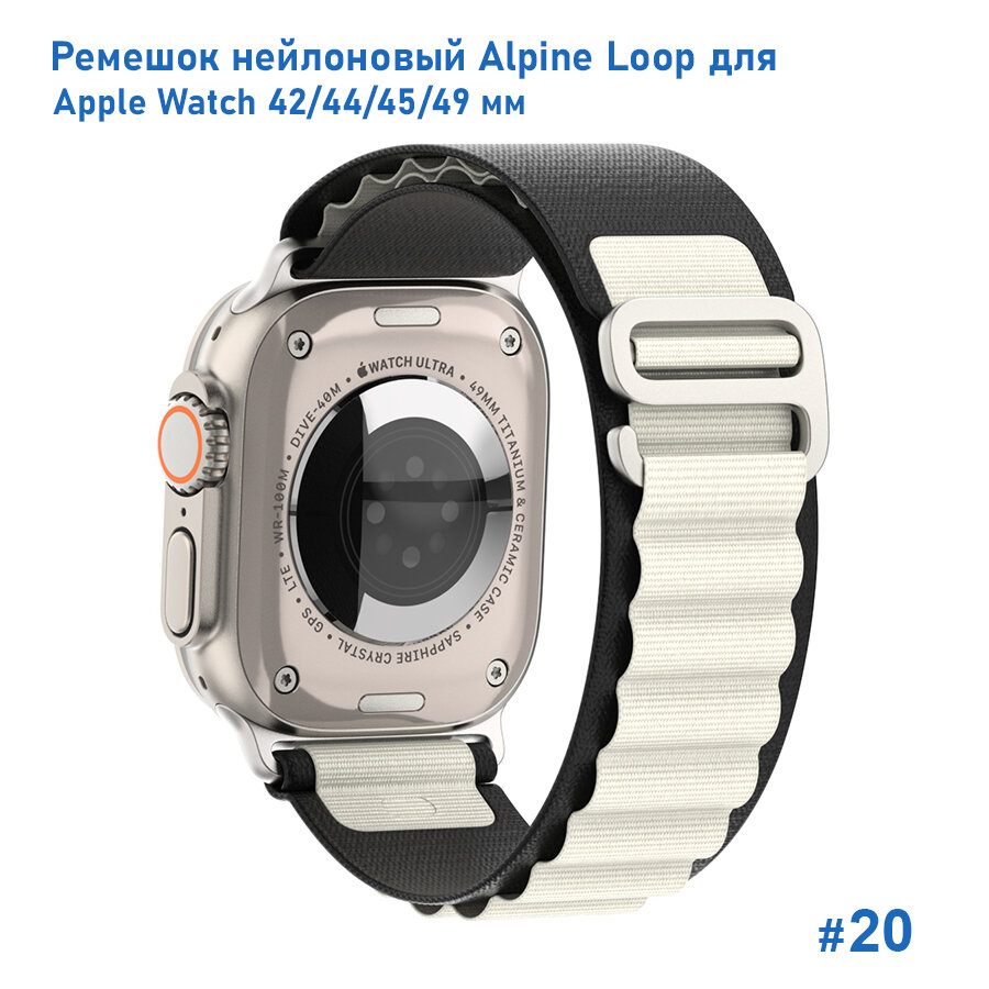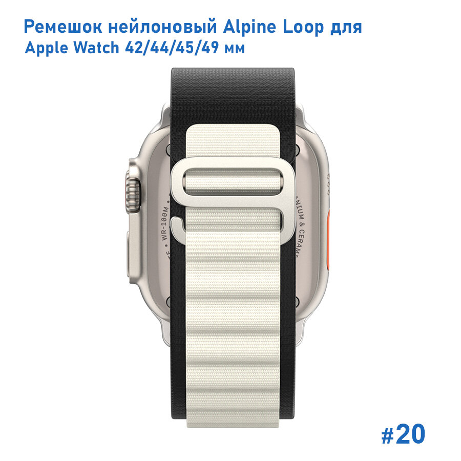 Купить Ремешок нейлоновый Alpine Loop для Apple Watch 42/44/45/49 мм, на застежка, черный+белый (20)