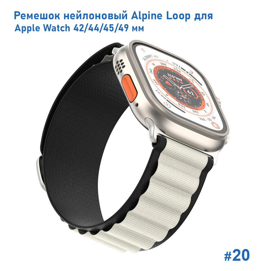 СохранитьРемешок нейлоновый Alpine Loop для Apple Watch 42/44/45/49 мм, на застежка, черный+белый (20) интересное: