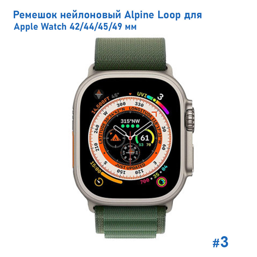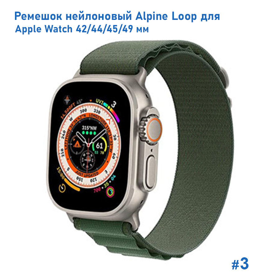 Купить Ремешок нейлоновый Alpine Loop для Apple Watch 42/44/45/49 мм, на застежка, зеленый (3)