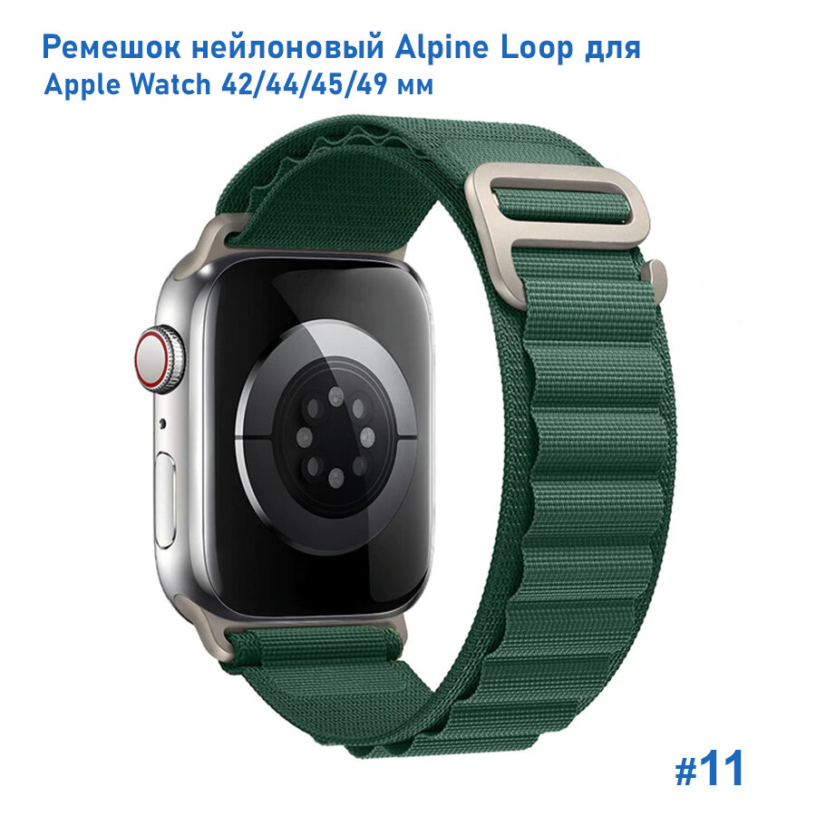 Купить Ремешок нейлоновый Alpine Loop для Apple Watch 42/44/45/49 мм, на застежка, темно-зеленый (11)