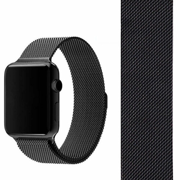 Металлический ремешок для часов Apple Watch 42-44 mm Миланская петля / Стальной браслет сетчатый гипоаллергенный ( Черный )