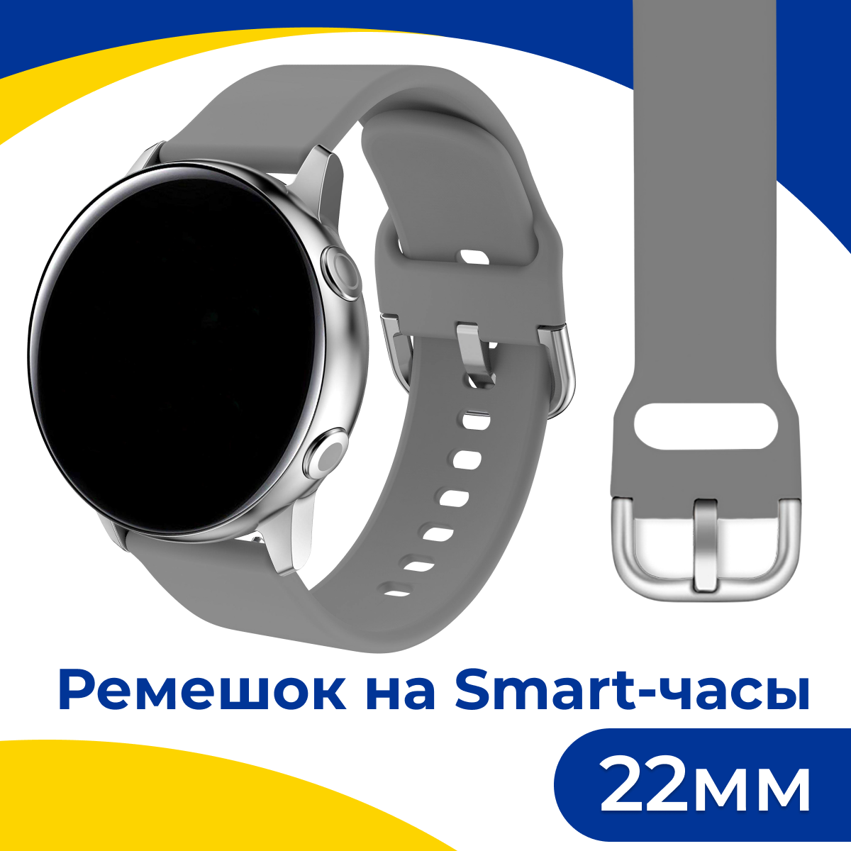 Купить Силиконовый ремешок с застежкой на смарт часы Samsung Galaxy, Honor, Huawei, Amazfit, Garmin, Xiaomi Watch (22 mm) / Браслет на умные часы / Серый