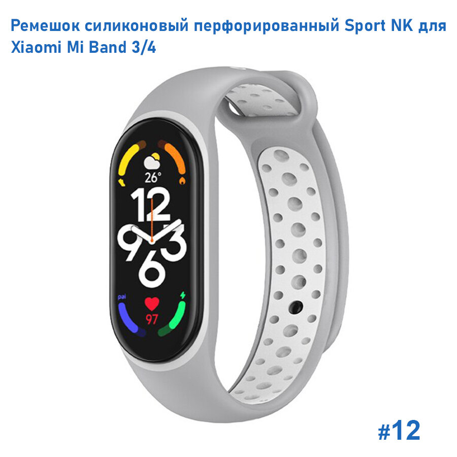 СохранитьРемешок силиконовый перфорированный Sport NK для Xiaomi Mi Band 3/4, на кнопке, серый+белый (12) интересное: