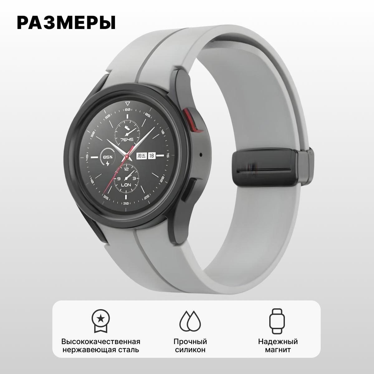 Силиконовый ремешок для часов Samsung Galaxy Watch 4 Classic 40 42 43 44 46 47 мм mm серый Браслет для самсунг галакси вотч 5 6 интересное: