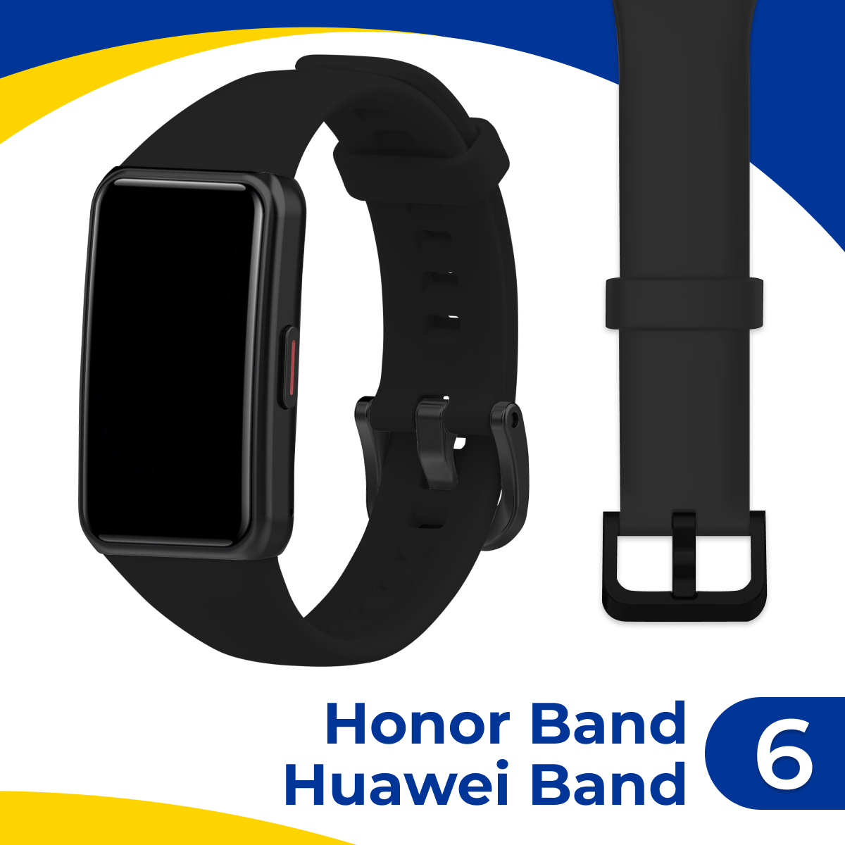 Купить Силиконовый ремешок с застежкой для фитнес-браслета Honor Band 6 и Huawei Band 6 / Браслет на смарт часы Хонор Бэнд 6 и Хуавей Бэнд 6 / Черный