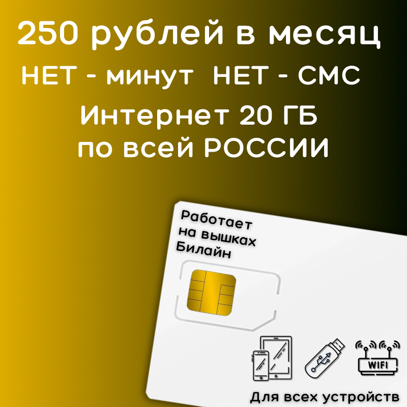 Сим карта интернет 250 рублей в месяц по РФ 20 ГБ для любых устройств: телефон, модем, роутер, камера 4G LTE YABELV1 интересное:
