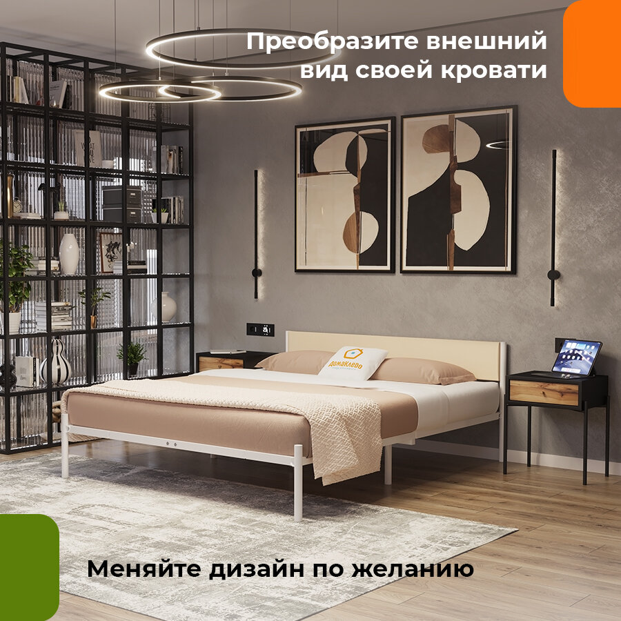 ДомаКлёво, универсальное мягкое изголовье для металлической кровати шириной 160, кожзам бежевый Манго