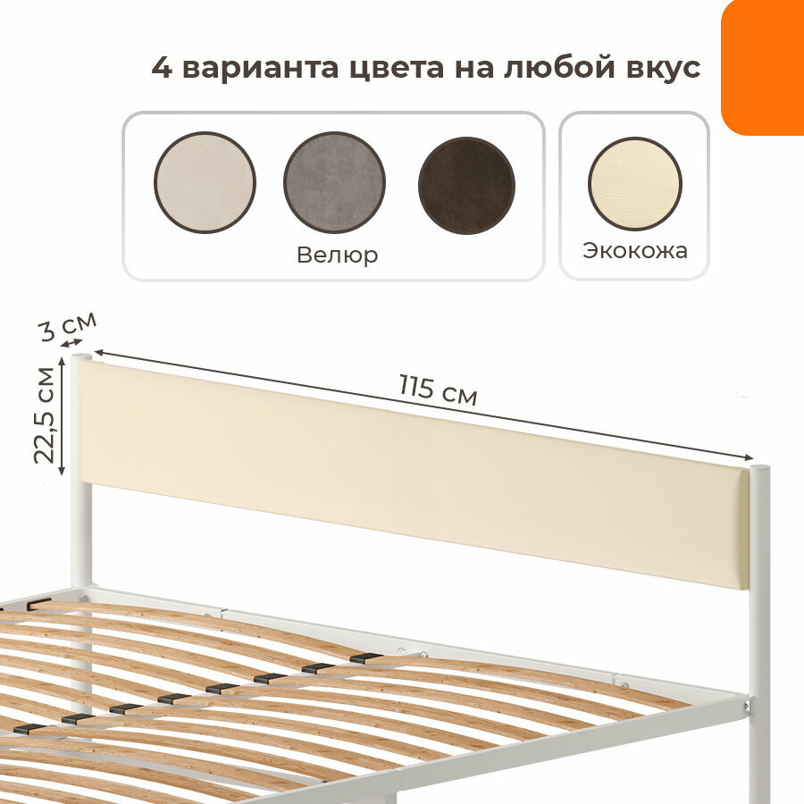 ДомаКлёво, универсальное мягкое изголовье для металлической кровати шириной 90, бежевый велюр